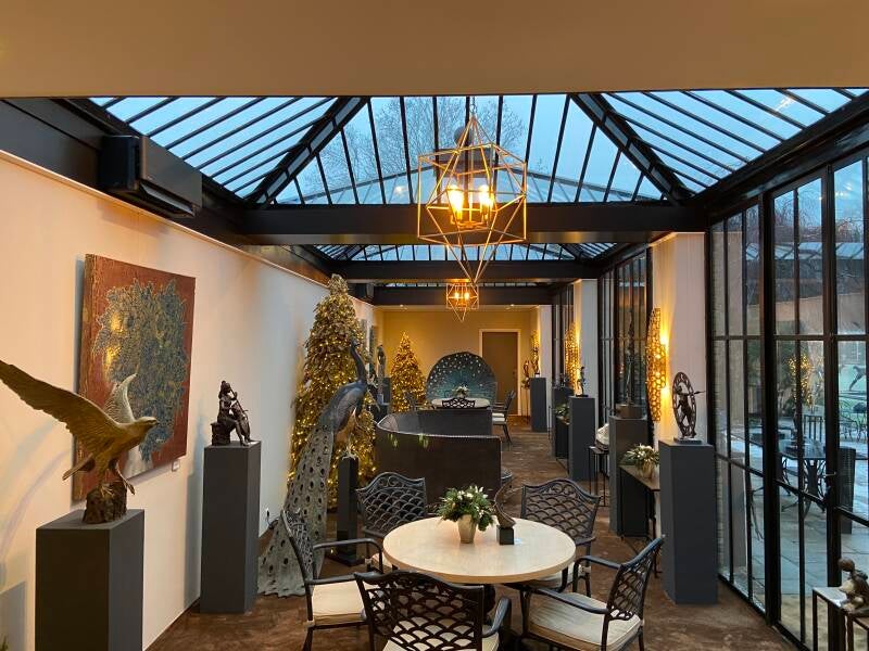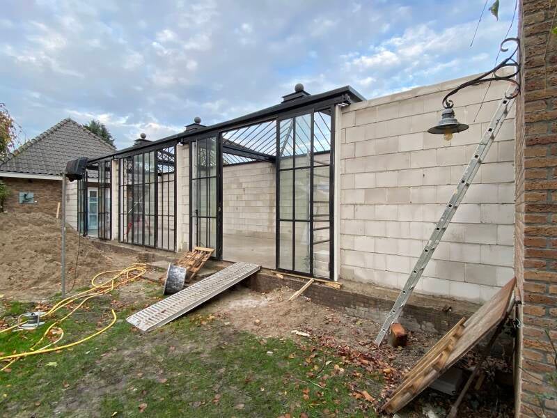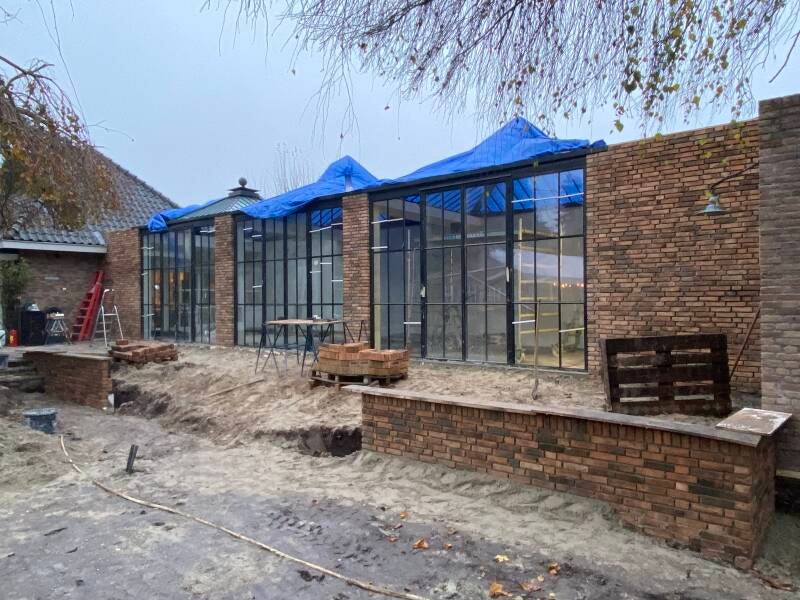 In de Beeldentuin in Mariënheem hebben wij een aanbouw gerealiseerd, waarbij we het gehele proces van fundering tot afwerking hebben verzorgd. De gevel werd met zorg gemetseld, zodat deze naadloos aansluit op het bestaande gebouw. We hebben de glazen wanden en dakconstructie geplaatst, wat zorgt voor een lichte en open sfeer. Daarnaast hebben we het stukwerk en het leggen van de vloer volledig in eigen beheer uitgevoerd, zodat de aanbouw perfect aansluit bij de rest van de Beeldentuin.